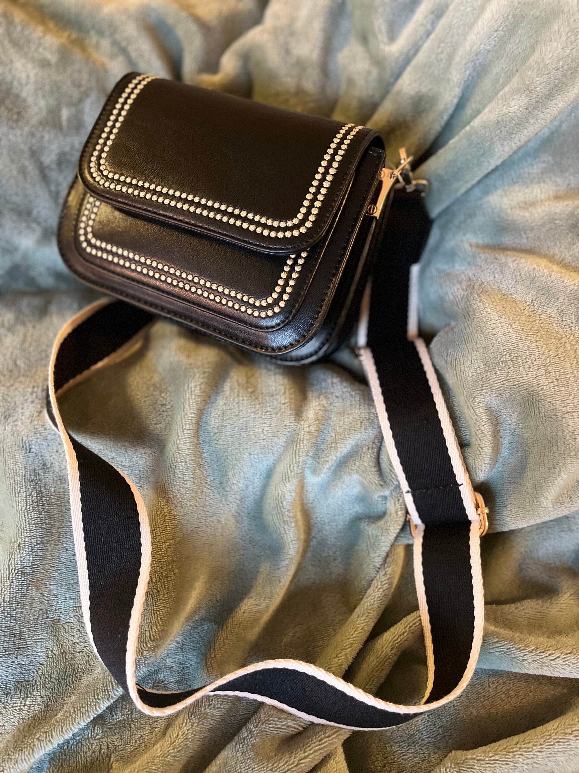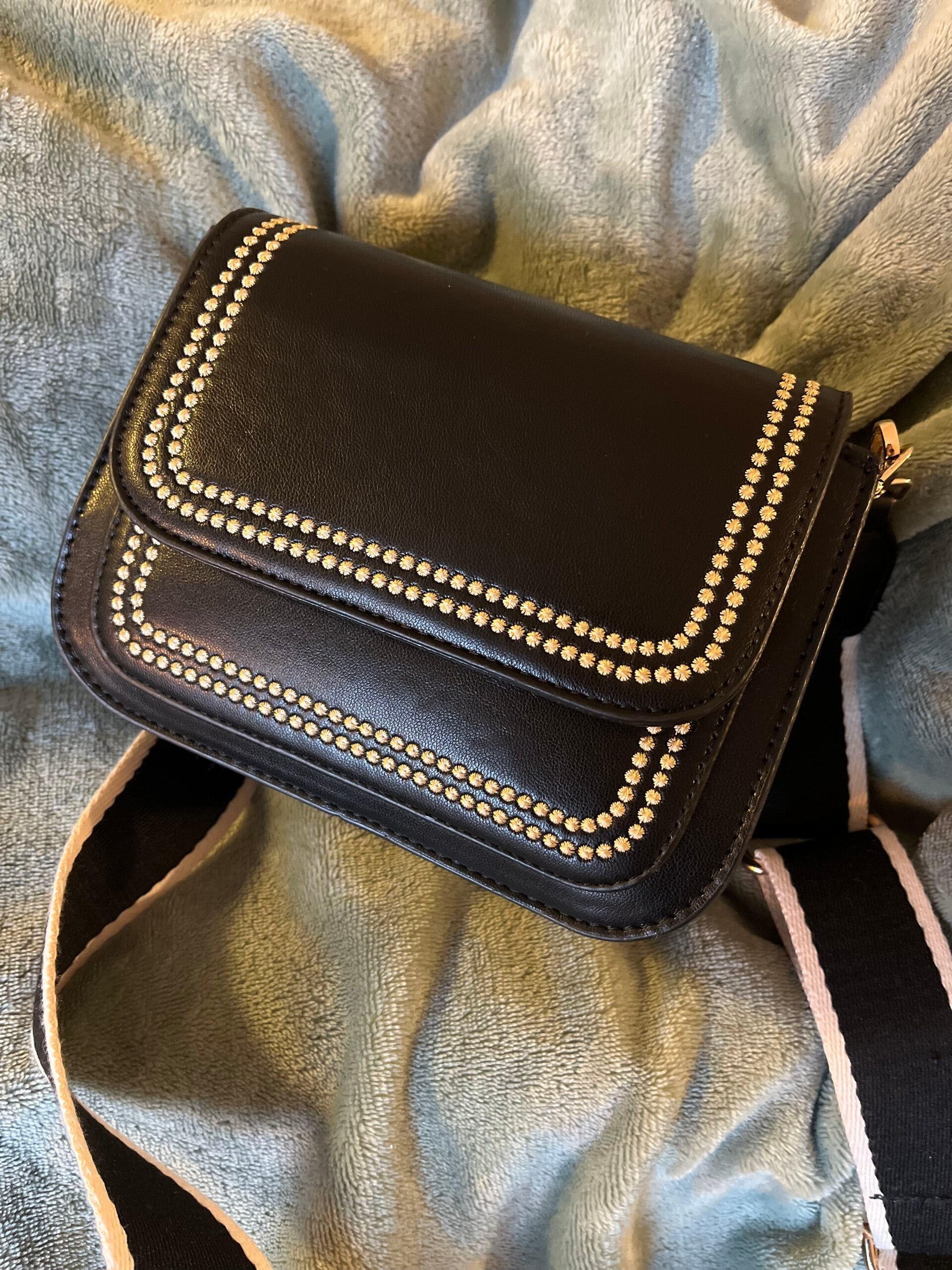 Zwart met gouden handtas met bijpassende fashion riem