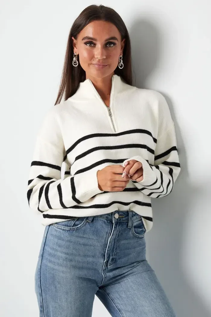 Hoe warm ziet deze te leuke gebreide trui eruit? Deze trui mag niet ontbreken in jouw garderobe deze herfst en winter. De trui is gemaakt van 45% acryl, 30% polyester en 25% nylon.