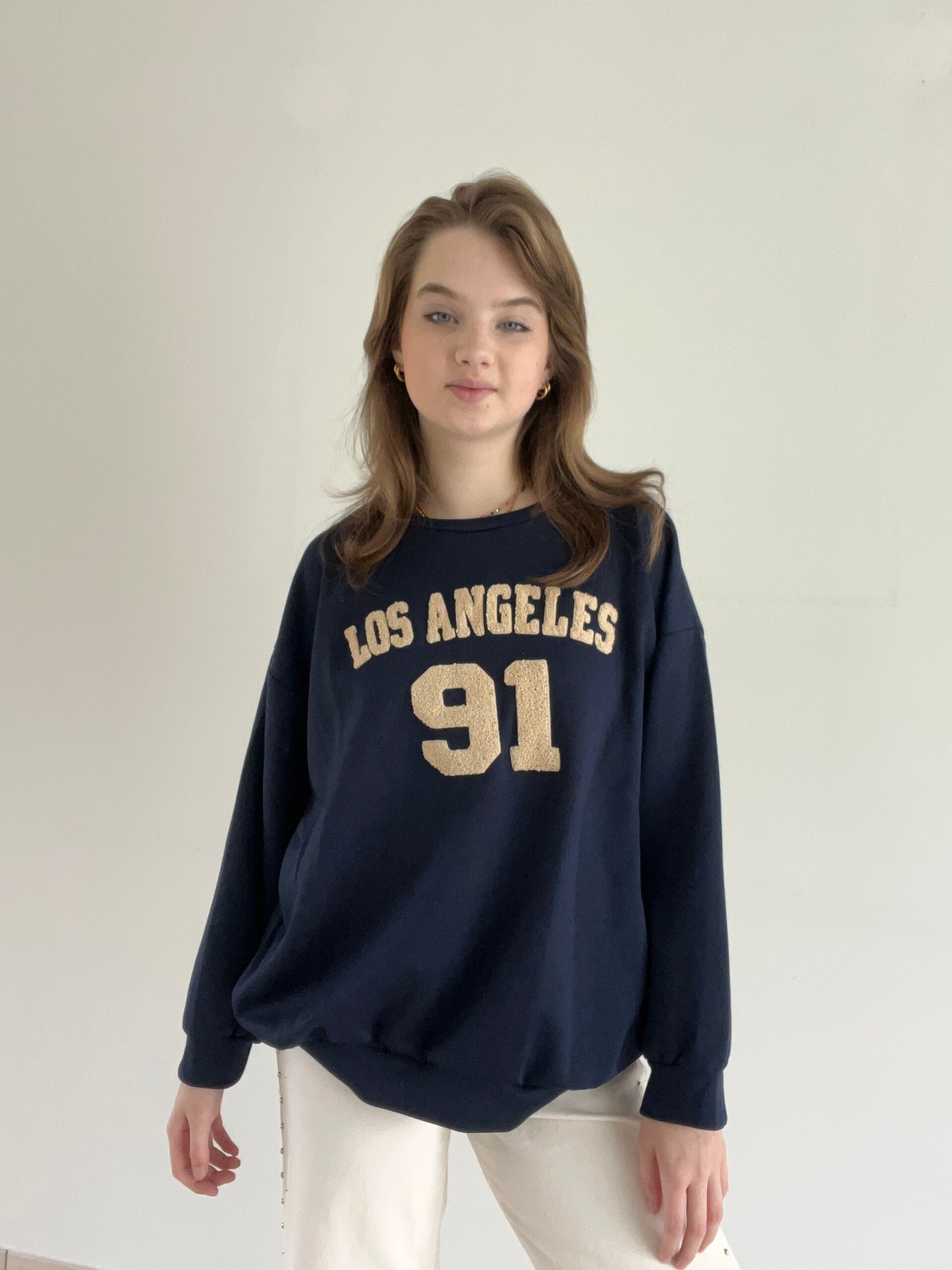 Donkerblauwe trui met tekst